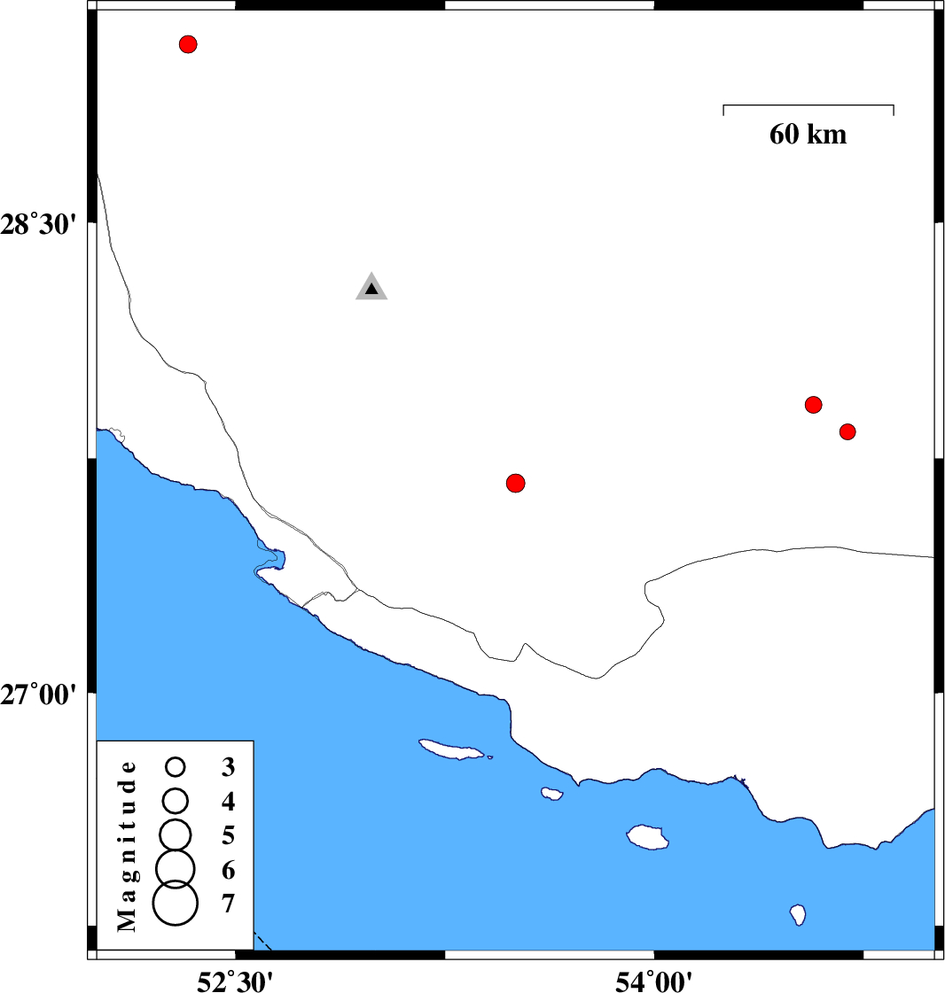 | 2017/09/02 | 20:47:52.8 | 01:17:52.8 | 27.834 | 54.692 | 15 | ML:2.5 | Fars Province, 39 km North-East of Lar | ||