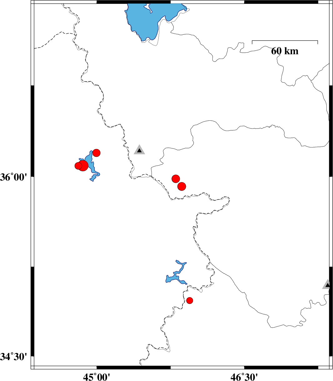 | 2017/08/30 | 10:31:07.1 | 15:01:07.1 | 35.981 | 45.803 | 15 | ML:3.6 | Kurdistan Province, 8 km of Baneh | ||