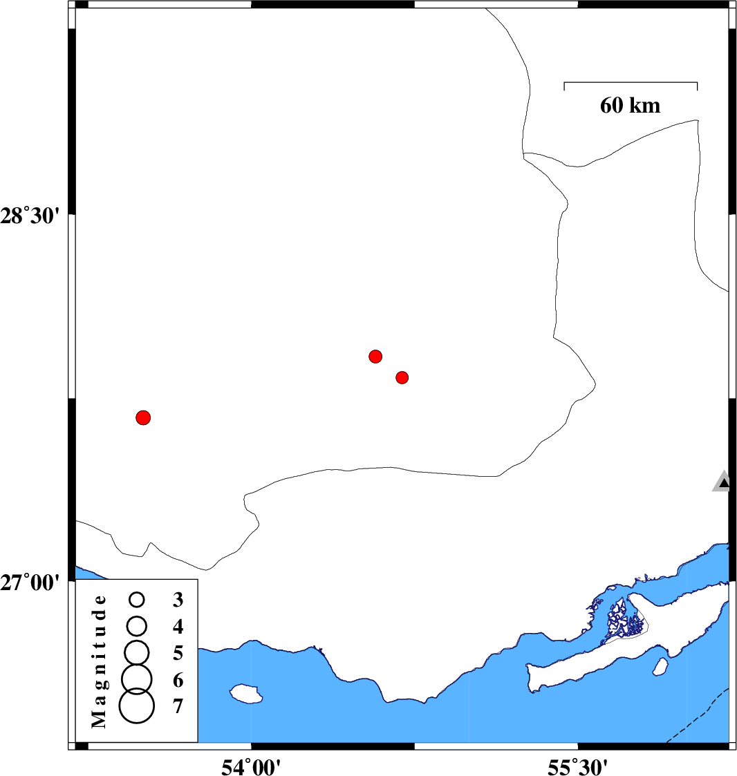 | 2017/09/02 | 20:47:52.8 | 01:17:52.8 | 27.834 | 54.692 | 15 | ML:2.5 | Fars Province, 39 km North-East of Lar | ||