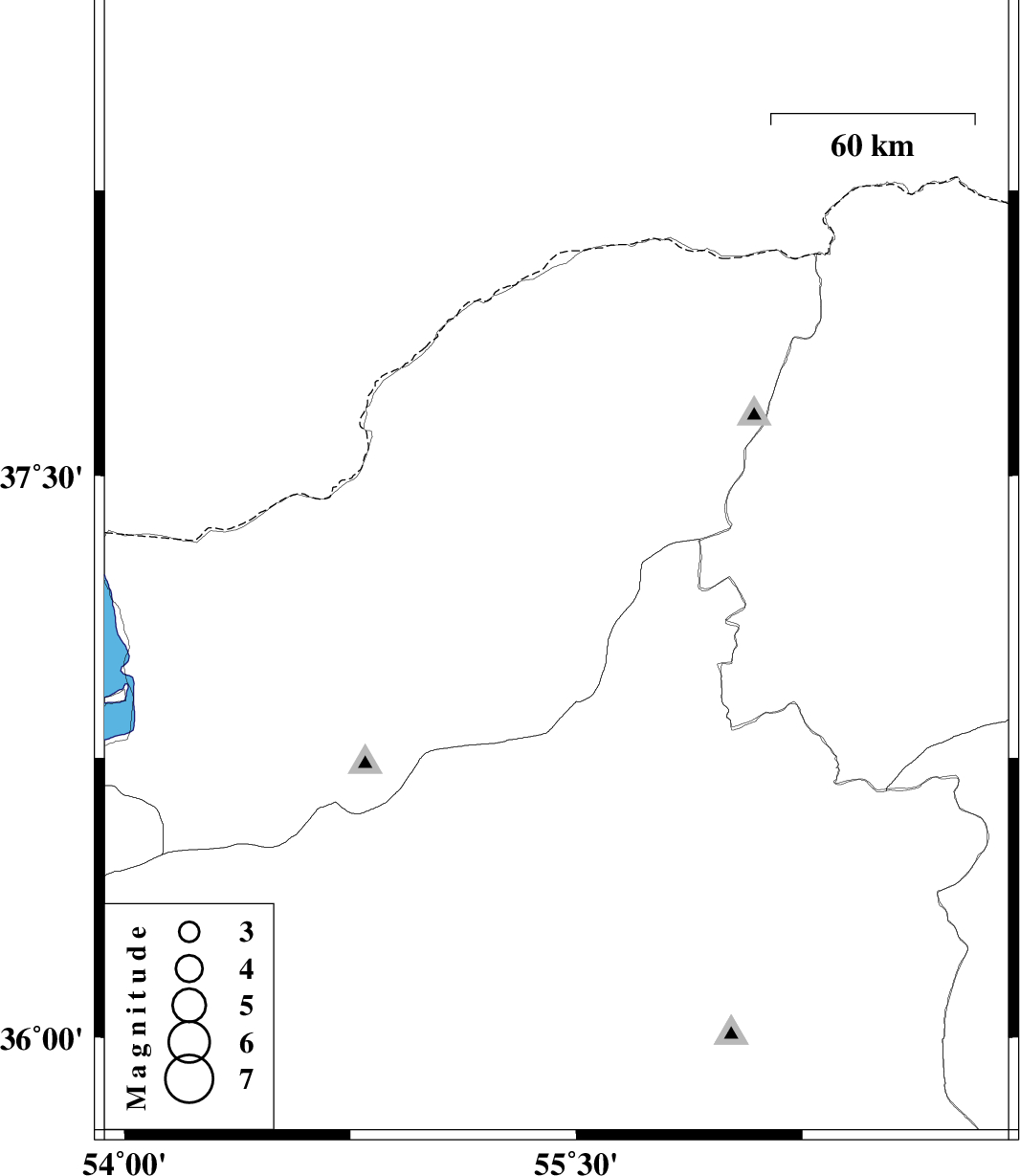 | 2017/09/04 | 08:19:43.9 | 12:49:43.9 | 37.251 | 55.434 | 14 | ML:2.8 | Golestan Province, 5 km of Minodasht |