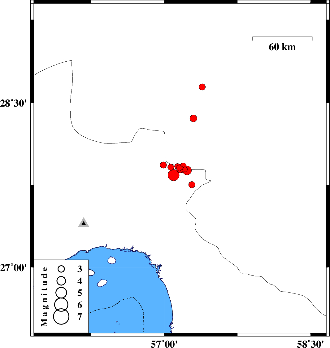 2017/08/31 02:45:20.8 07:15:20.8 27.91557.06614 ML:2.8 Hormozgan Province, 57 km North-West of Dehbarez