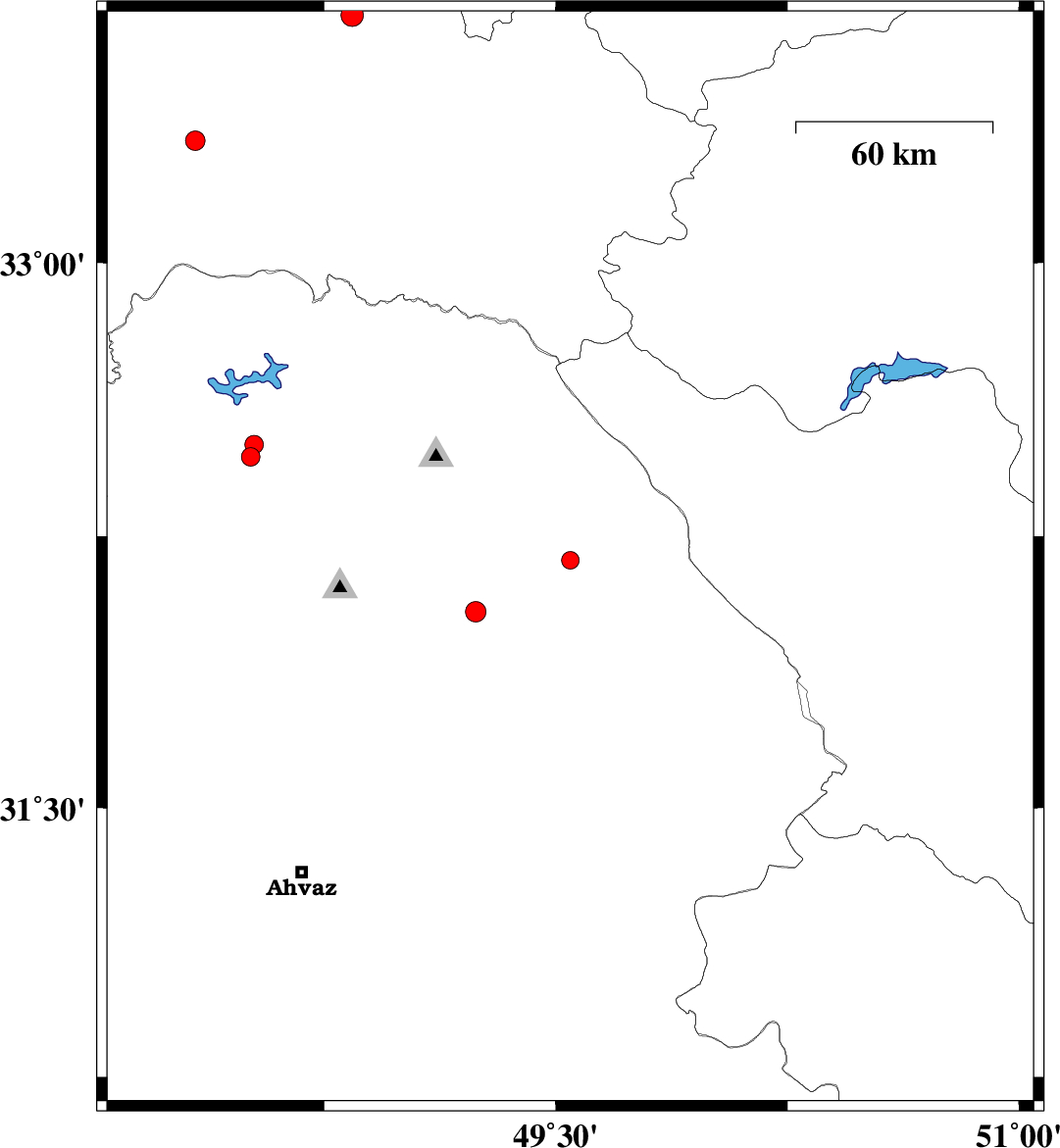 | 2017/09/05 | 16:54:42.3 | 21:24:42.3 | 32.184 | 49.547 | 14 | ML:2.5 | Khoozestan Province, 36 km North-East of Masjed Soleyman | ||