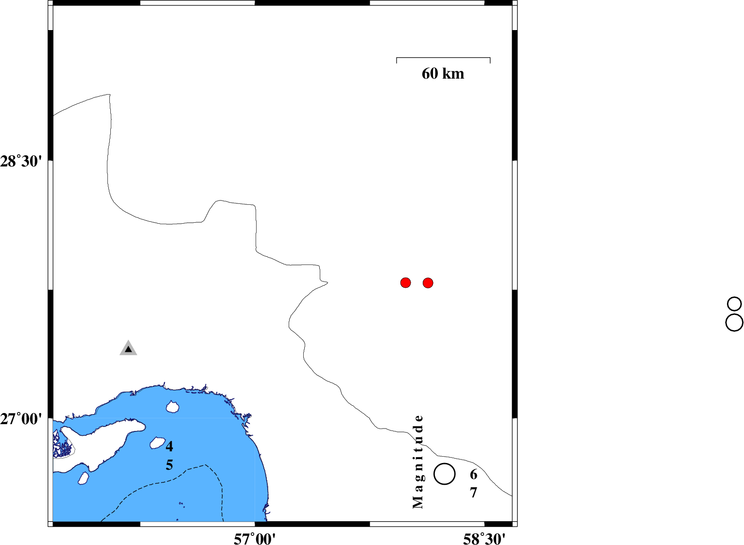 2017/08/31 03:08:41.1 07:38:41.1 27.88657.23318 ML:4.1 Hormozgan Province, 51 km North of Dehbarez