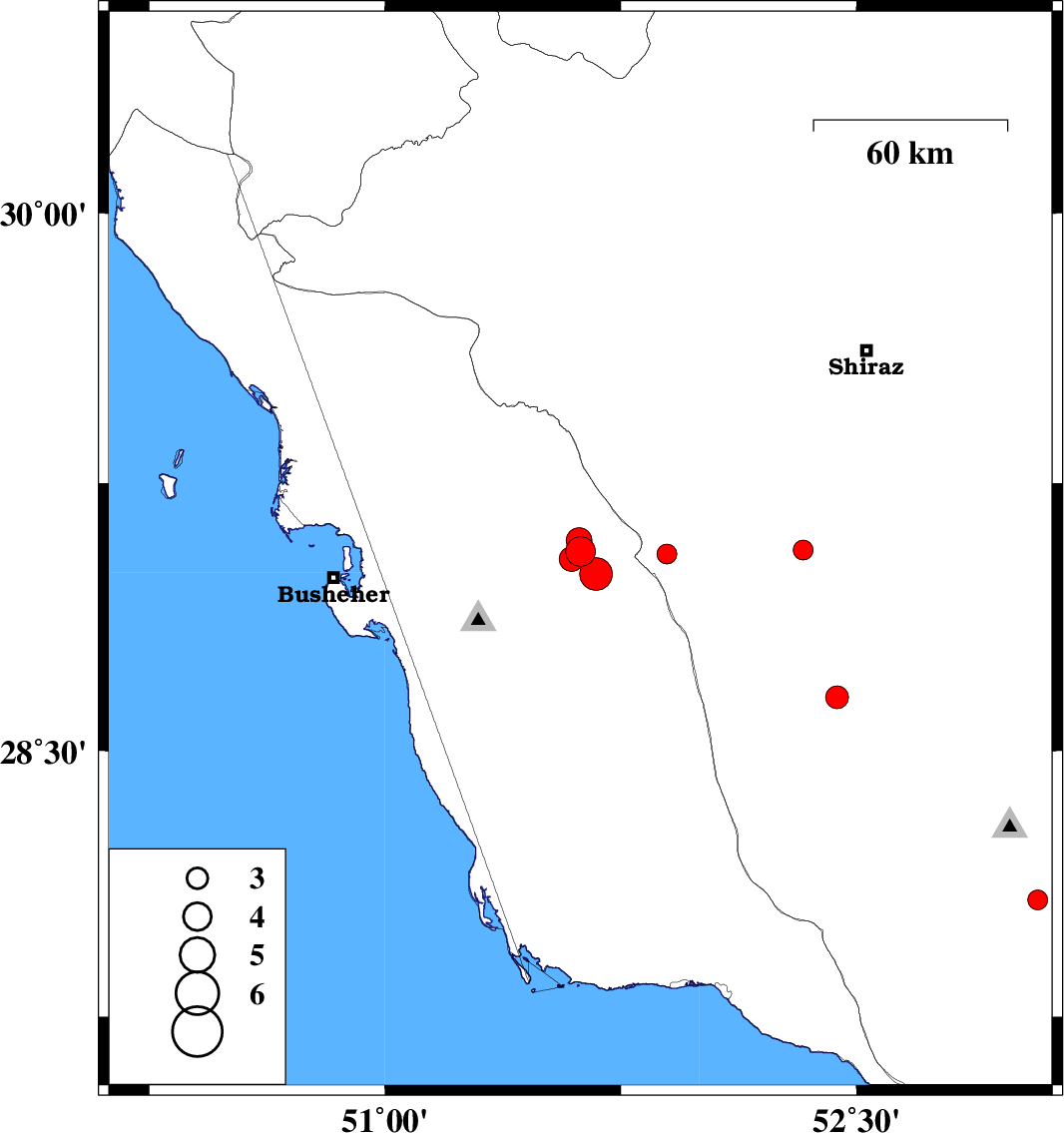| 2017/09/04 | 02:30:11.4 | 07:00:11.4 | 28.08 | 53.076 | 10 | ML:2.8 | Fars Province, 43 km South of Qir va Karzin | ||