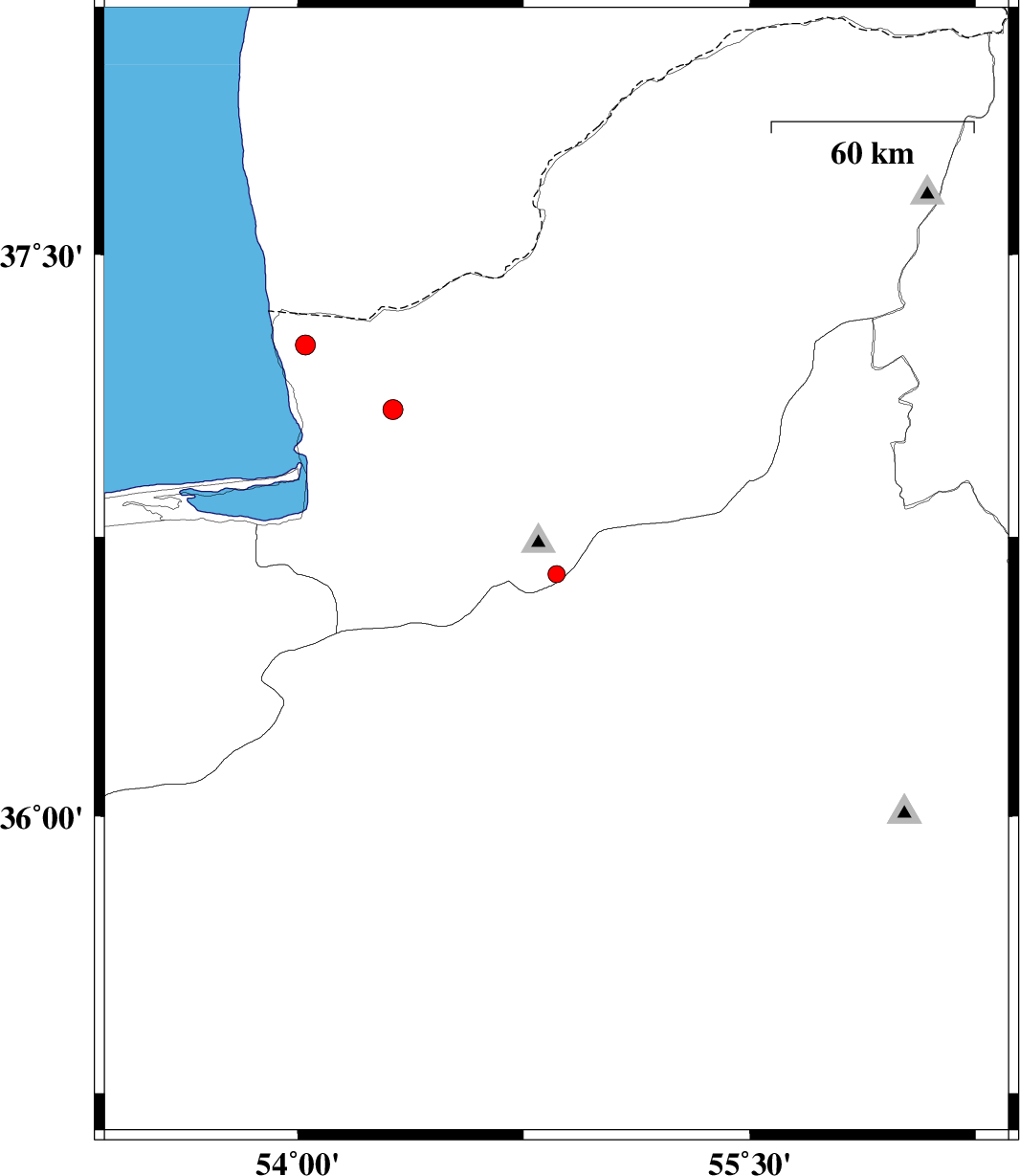 | 2017/09/16 | 15:07:10.5 | 19:37:10.5 | 37.261 | 54.025 | 14 | ML:2.9 | Golestan Province, 40 km North of Bandar-e torkaman | ||
