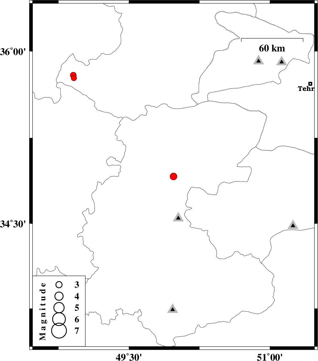 | 2017/09/23 | 05:01:52.7 | 08:31:52.7 | 34.913 | 49.974 | 7 | ML:3.4 | Markazi Province, 25 km North of Tafresh | ||