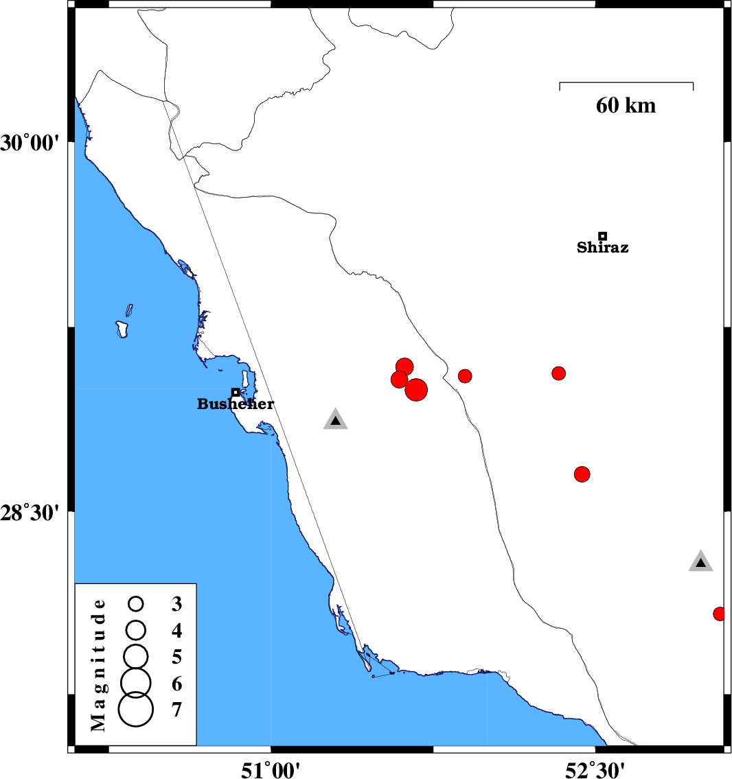| 2017/09/04 | 02:30:11.4 | 07:00:11.4 | 28.08 | 53.076 | 10 | ML:2.8 | Fars Province, 43 km South of Qir va Karzin | ||