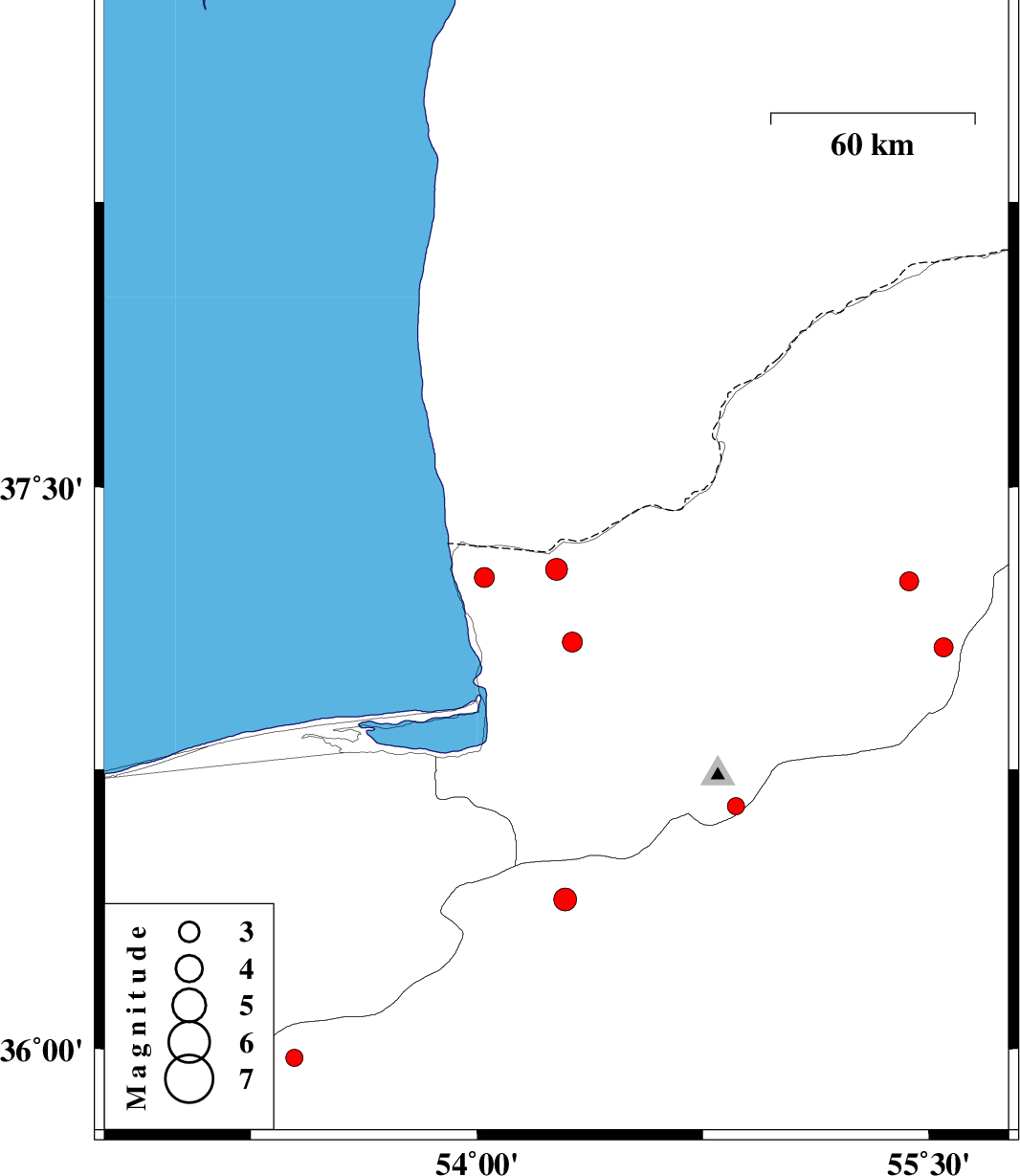| 2017/09/16 | 15:07:10.5 | 19:37:10.5 | 37.261 | 54.025 | 14 | ML:2.9 | Golestan Province, 40 km North of Bandar-e torkaman | ||