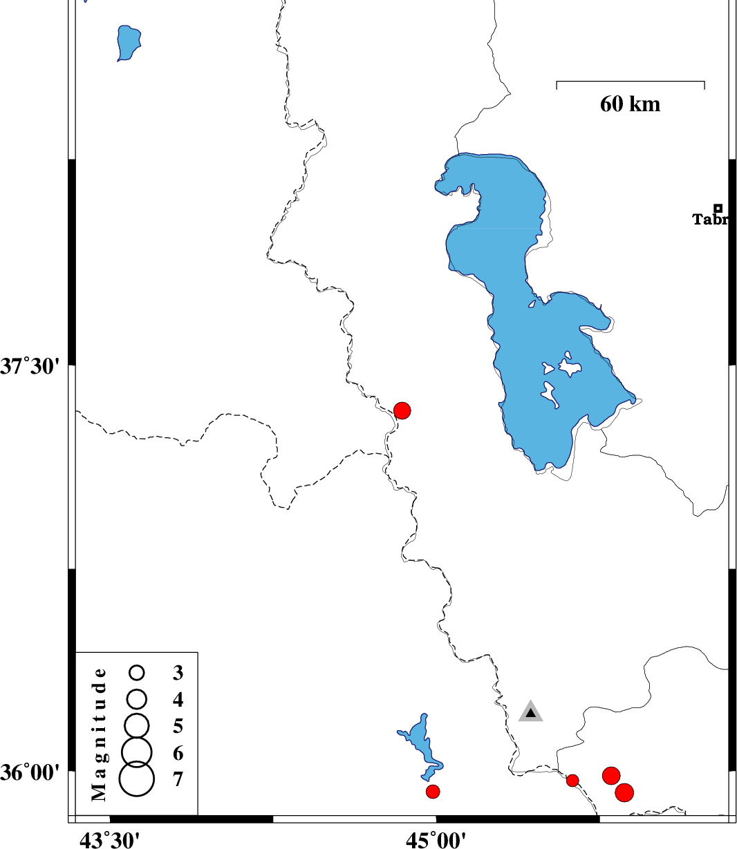 | 2017/09/26 | 06:57:02.1 | 10:27:02.1 | 37.333 | 44.842 | 14 | ML:3.5 | Azarbaijan Gharbi Province, 31 km South-West of Orumiyeh | ||