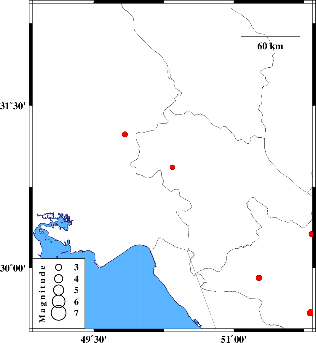 | 2017/10/02 | 06:22:28.1 | 09:52:28.1 | 29.906 | 51.269 | 14 | ML:2.8 | Fars Province, 34 km South-West of Nurabad | ||