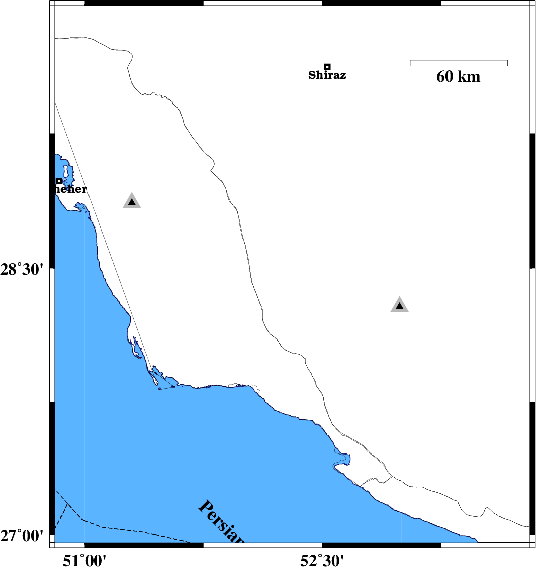 | 2017/10/02 | 06:22:28.1 | 09:52:28.1 | 29.906 | 51.269 | 14 | ML:2.8 | Fars Province, 34 km South-West of Nurabad |