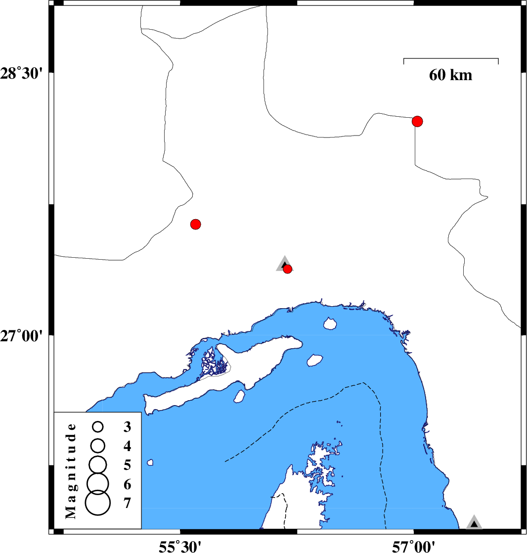 | 2017/10/08 | 08:47:00.9 | 12:17:00.9 | 27.636 | 55.598 | 6 | ML:3 | Hormozgan Province, 81 km South-West of Hajiabad |