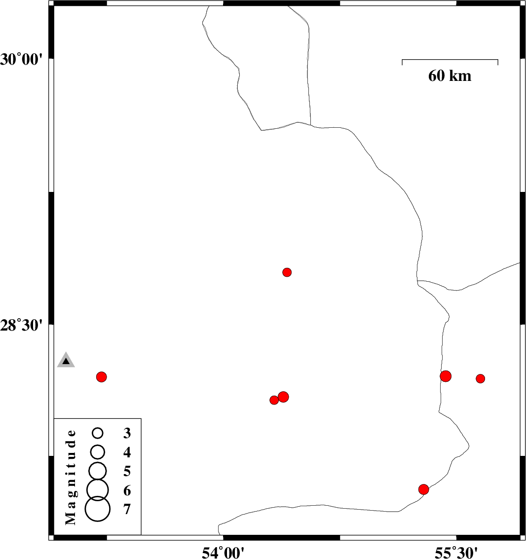 | 2017/10/15 | 09:46:52.4 | 13:16:52.4 | 28.201 | 53.216 | 14 | ML:3 | Fars Province, 34 km South-East of Qir va Karzin | ||