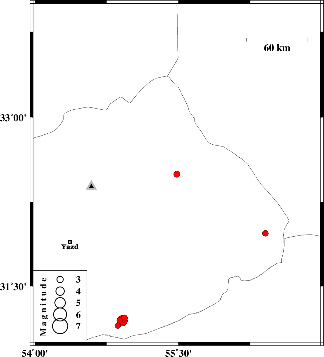| 2017/10/19 | 02:41:04.7 | 06:11:04.7 | 31.193 | 54.886 | 14 | ML:2.7 | Yazd Province, 60 km South-East of Mehriz | ||