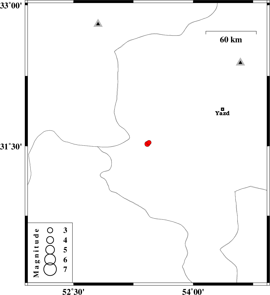 | 2017/10/31 | 19:20:05.7 | 22:50:05.7 | 31.539 | 53.446 | 14 | ML:2.5 | Yazd Province, 48 km North-East of Abarkuh | ||