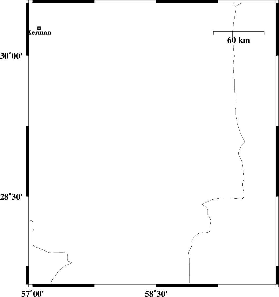 | 2017/10/25 | 14:38:32.8 | 18:08:32.8 | 27.959 | 57.145 | 14 | ML:2.7 | Kerman Province, 54 km -West of Kahnuj |