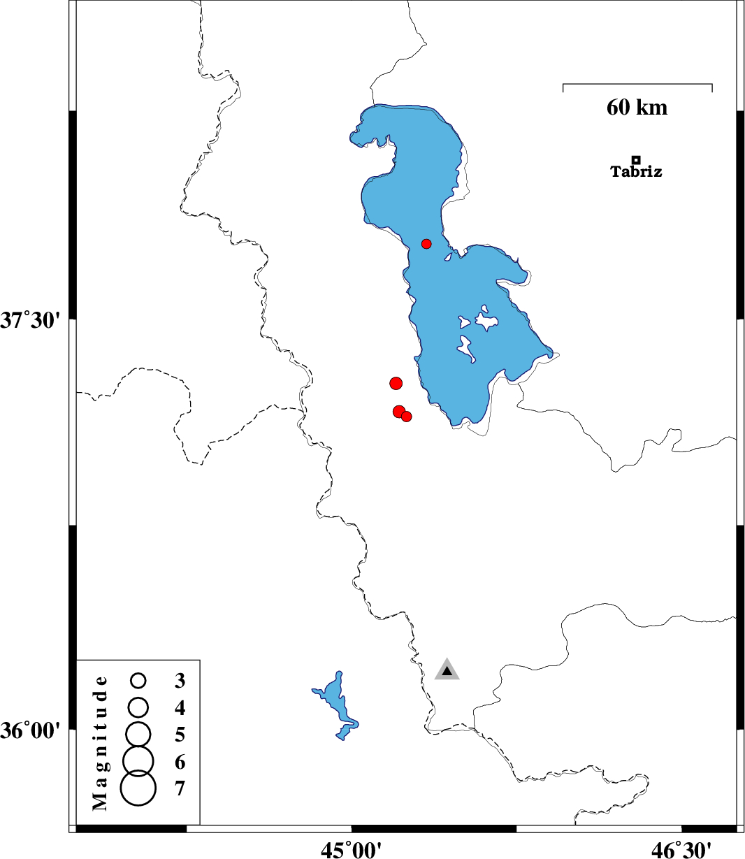 | 2017/10/31 | 16:32:45.1 | 20:02:45.1 | 37.771 | 45.34 | 14 | ML:2 | , 34 km North-East of Orumiyeh | ||