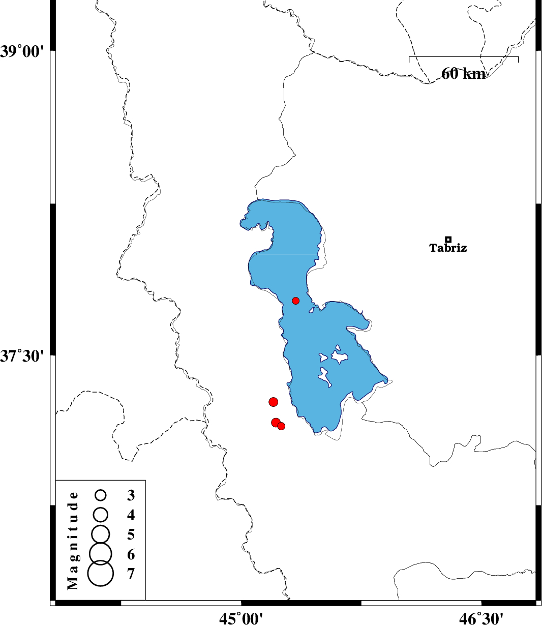 | 2017/10/31 | 16:32:45.1 | 20:02:45.1 | 37.771 | 45.34 | 14 | ML:2 | , 34 km North-East of Orumiyeh | ||