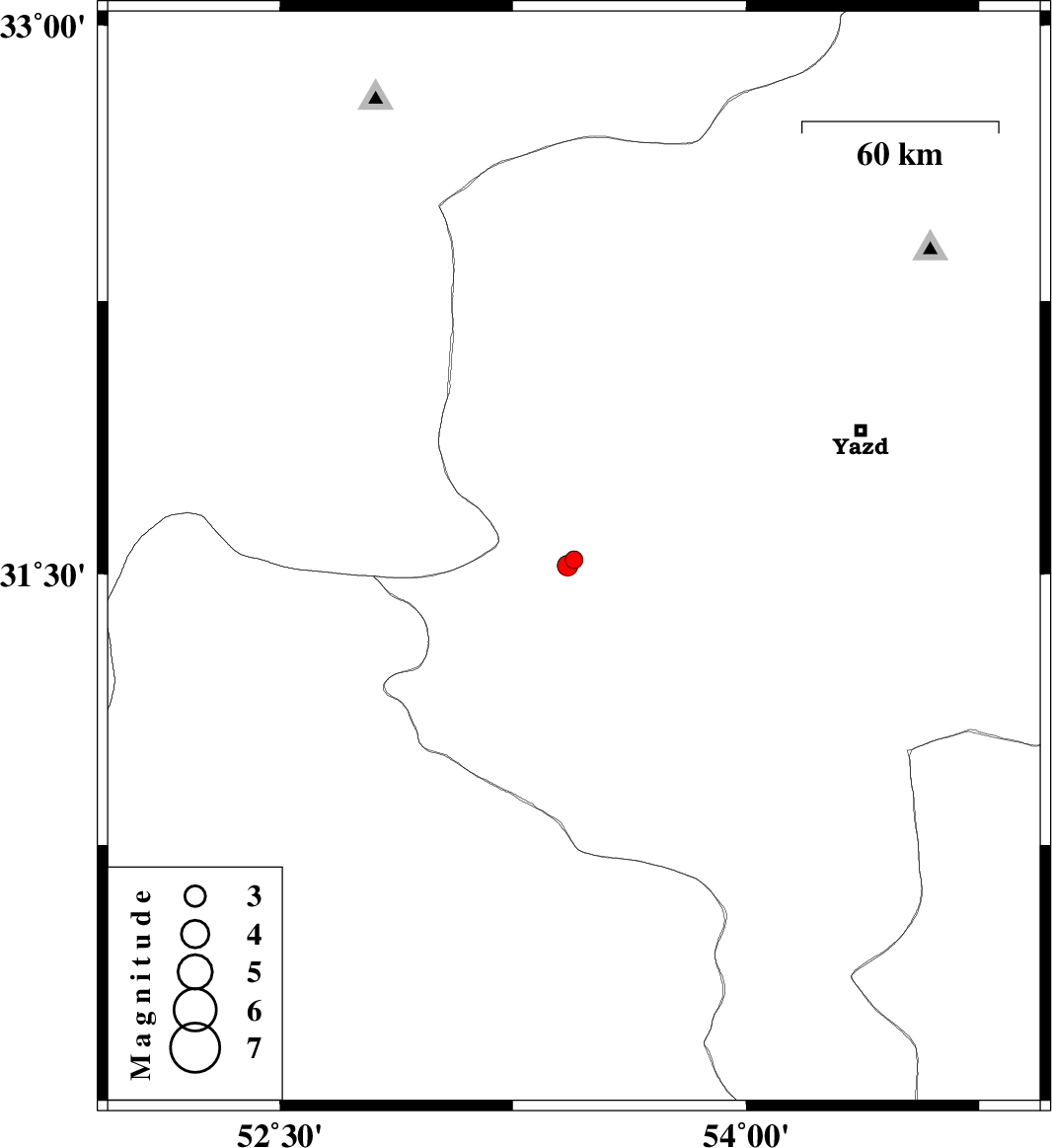 | 2017/10/31 | 19:20:05.7 | 22:50:05.7 | 31.539 | 53.446 | 14 | ML:2.5 | Yazd Province, 48 km North-East of Abarkuh | ||
