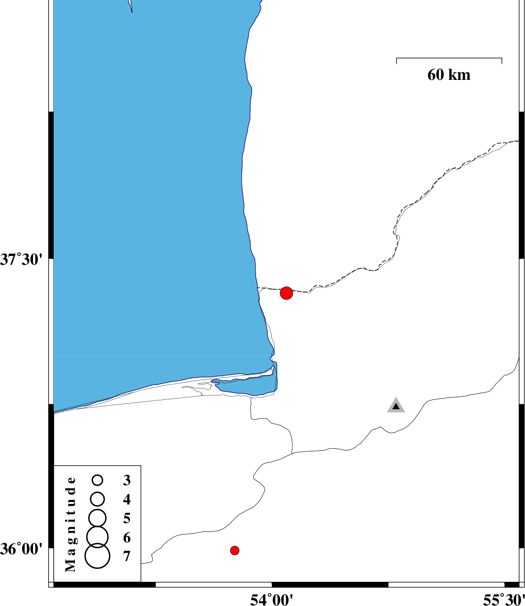 | 2017/11/01 | 08:34:04.1 | 12:04:04.1 | 37.322 | 54.093 | 16 | ML:3.7 | Golestan Province, 47 km North of Bandar-e torkaman | ||