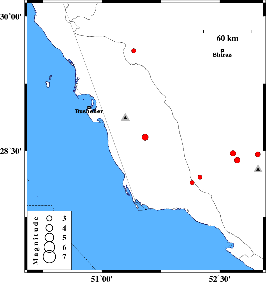 | 2017/11/07 | 11:20:15.9 | 14:50:15.9 | 28.649 | 51.55 | 17 | ML:3.6 | Bushehr Province, 17 km -East of Khormog | ||