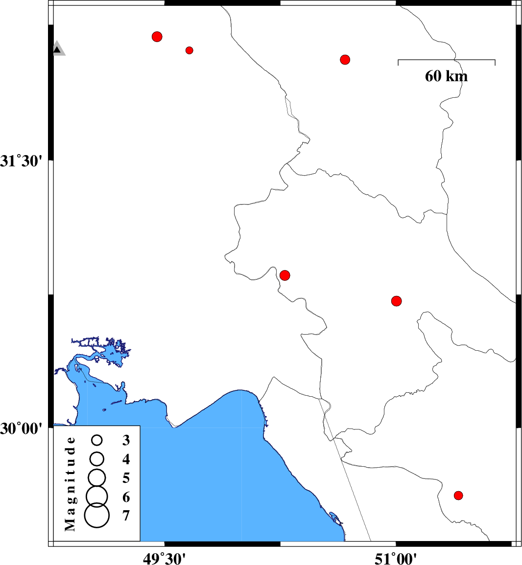 | 2017/11/07 | 18:05:38.2 | 21:35:38.2 | 30.857 | 50.279 | 15 | ML:3 | Kohkiluieh va boyerahmad Province, 29 km North of Behbahan | ||