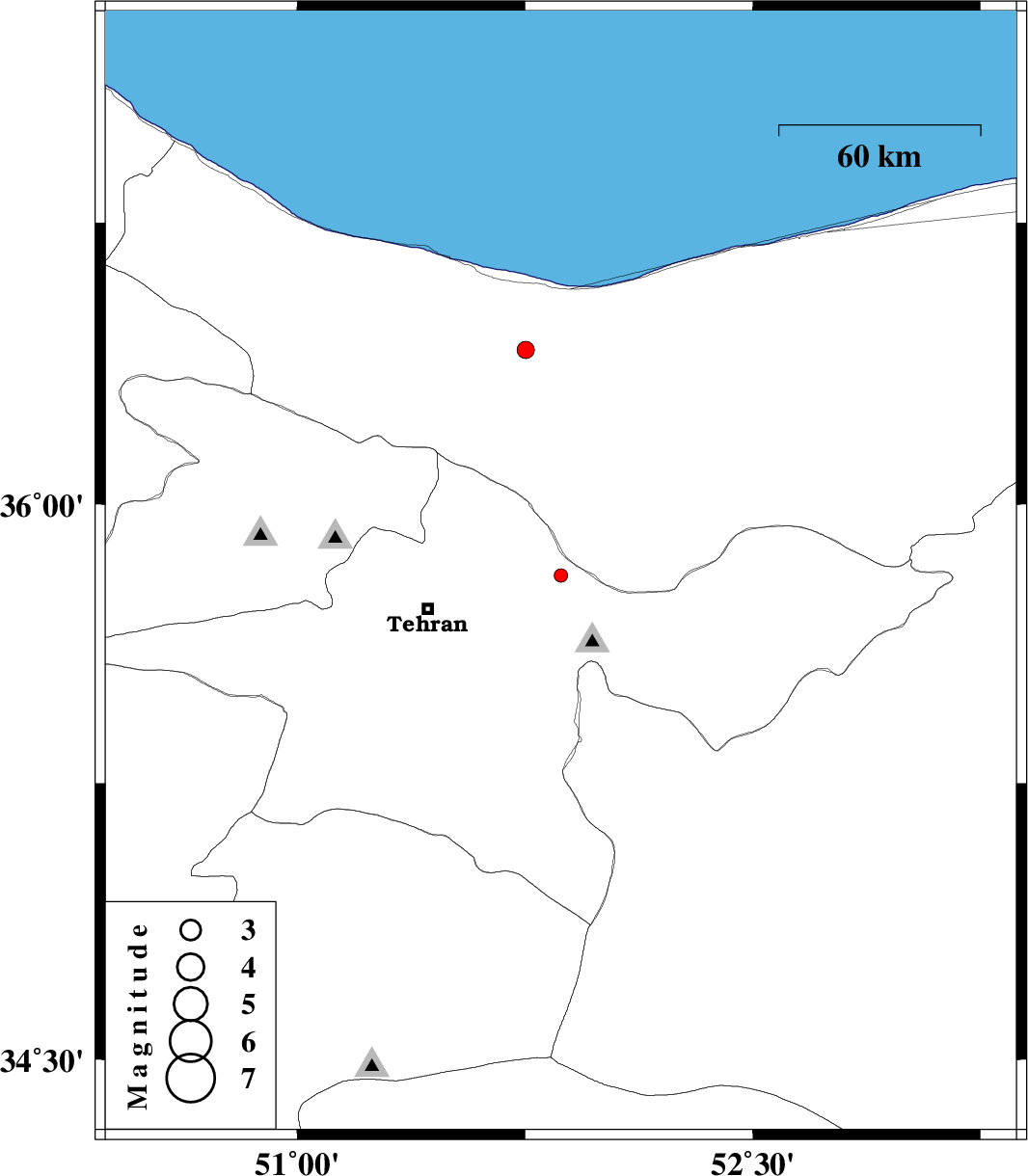 | 2017/10/31 | 03:46:37.2 | 07:16:37.2 | 36.412 | 51.752 | 6 | ML:2.5 | Mazandaran Province, 31 km South-West of Nur |