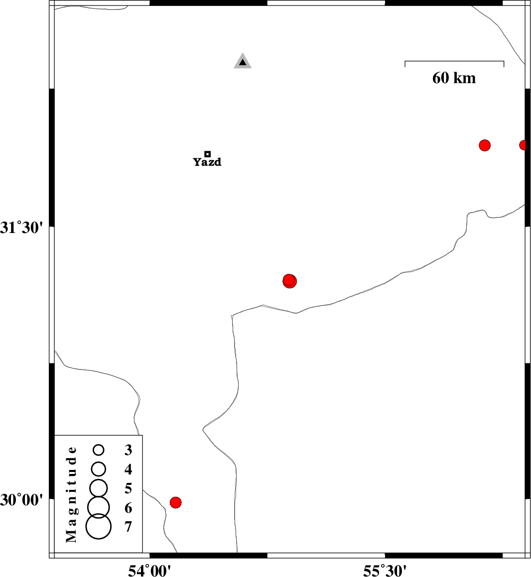 | 2017/11/07 | 06:39:59.5 | 10:09:59.5 | 31.943 | 56.135 | 14 | ML:3.3 | Yazd Province, 79 km North-East of Bafq | ||