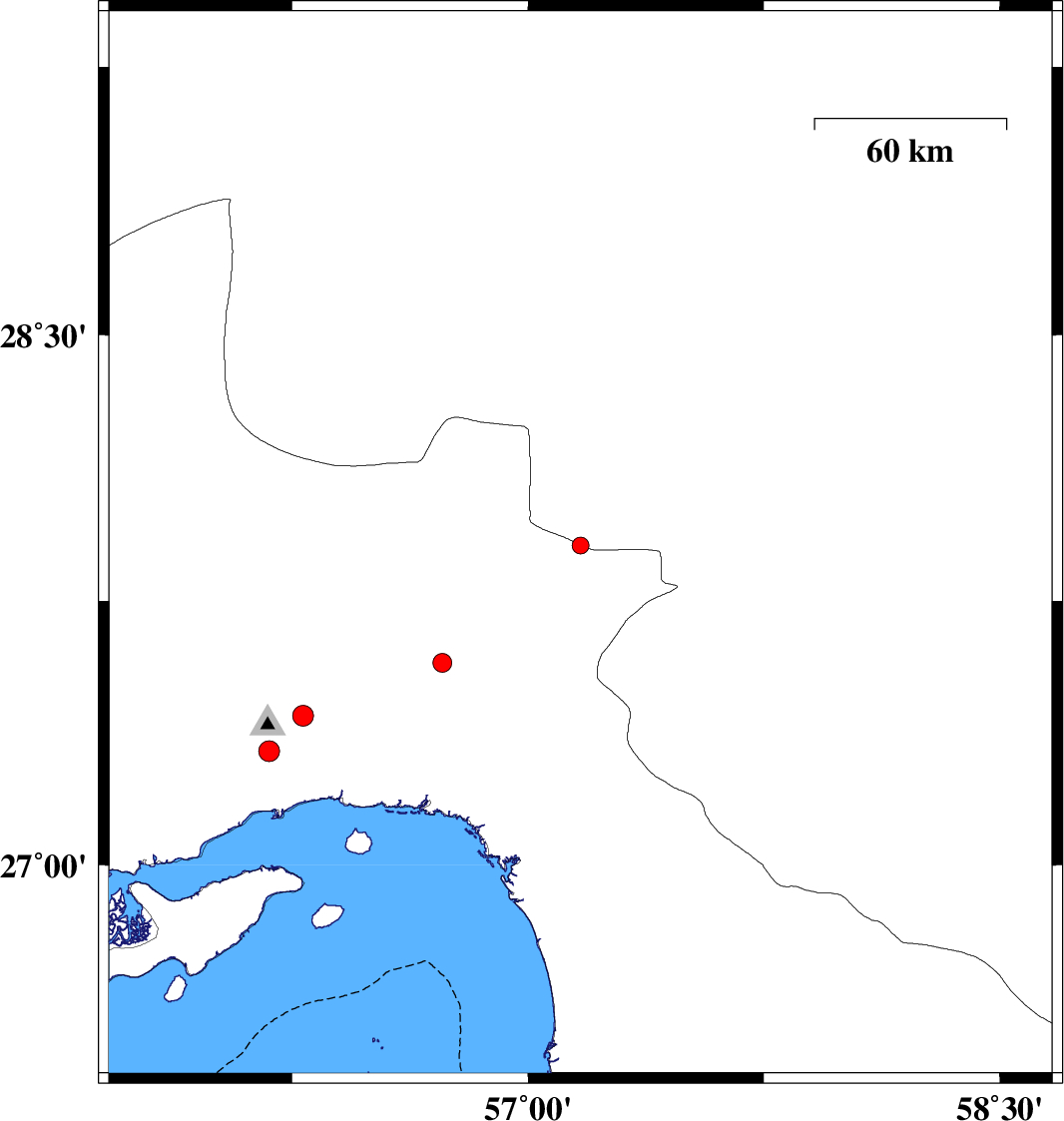 | 2017/11/06 | 17:14:42.4 | 20:44:42.4 | 27.324 | 56.176 | 14 | ML:3 | Hormozgan Province, 19 km North-West of Bandar-e abbas |