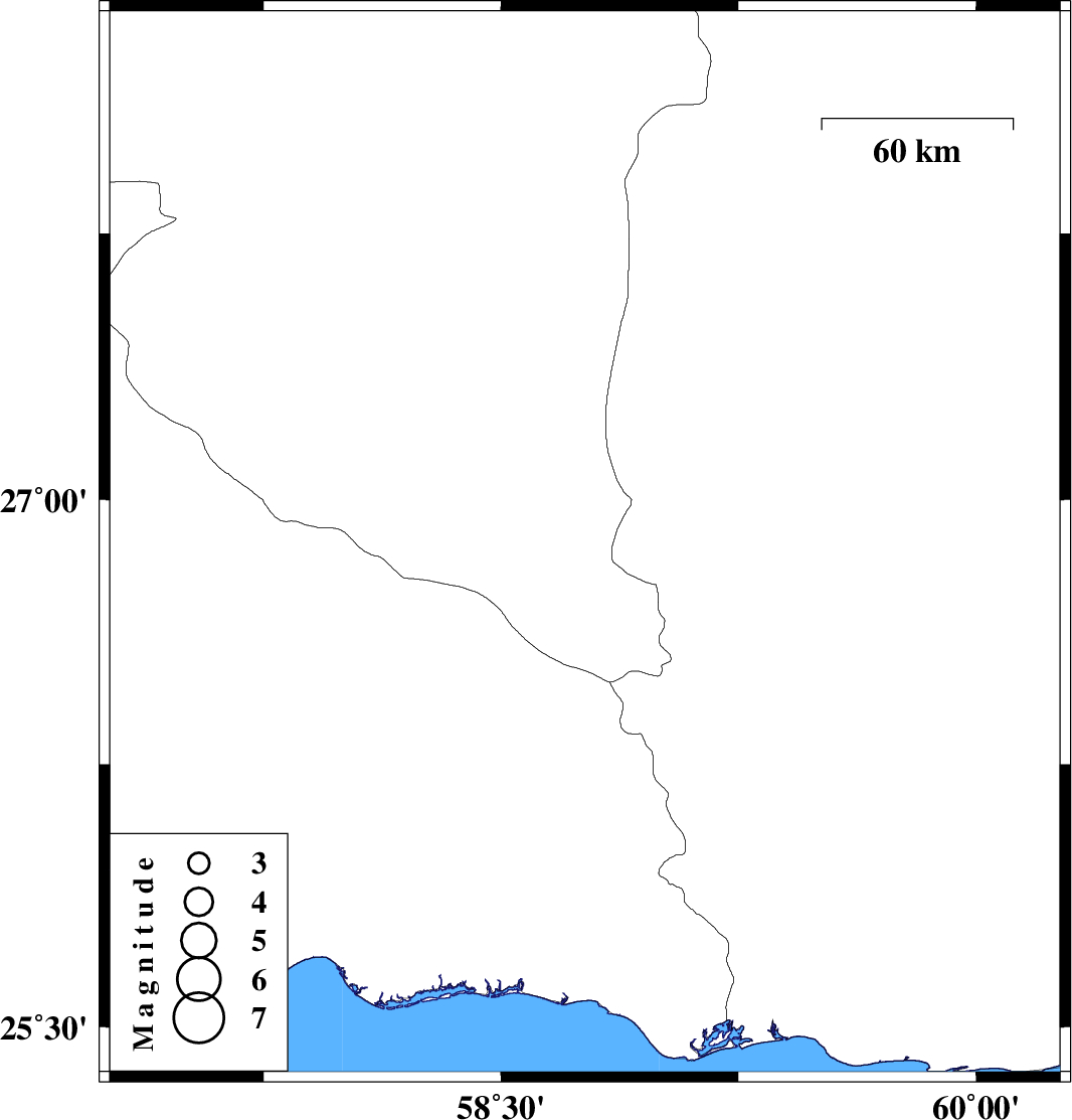 | 2017/11/09 | 07:46:41.5 | 11:16:41.5 | 26.873 | 58.765 | 14 | ML:2.7 | Kerman Province, 139 km South-East of Manujan |