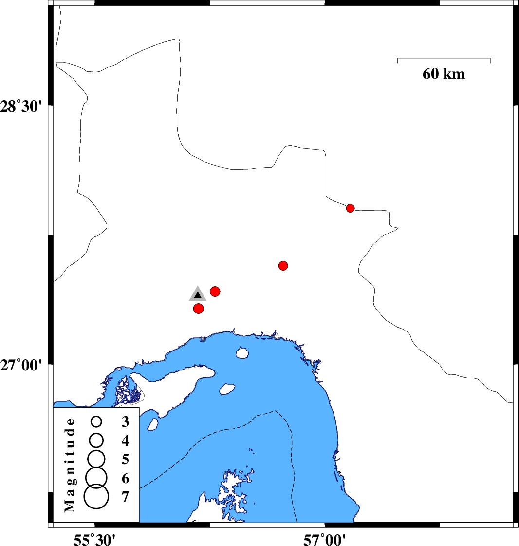 | 2017/11/06 | 17:14:42.4 | 20:44:42.4 | 27.324 | 56.176 | 14 | ML:3 | Hormozgan Province, 19 km North-West of Bandar-e abbas |