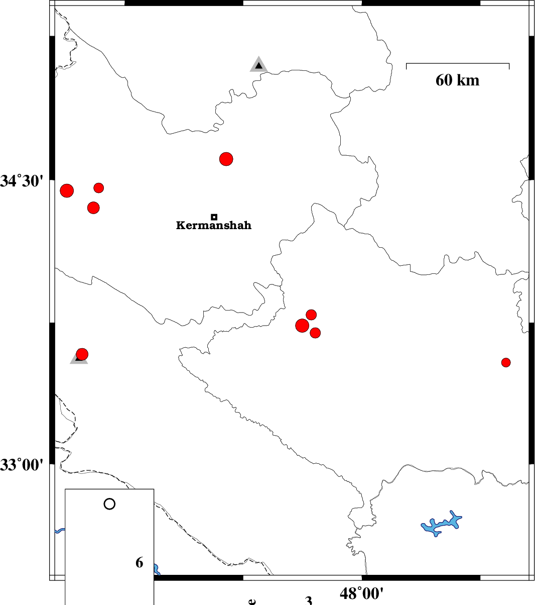 | 2017/11/12 | 23:37:23.0 | 03:07:23.0 | 34.614 | 46.068 | 15 | ML:3.8 | Kermanshah Province, 23 km North-East of Sar-e pol-e zahab | ||