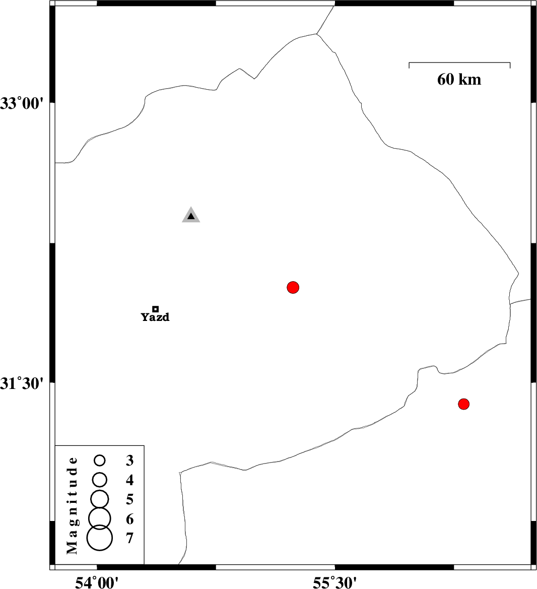 | 2017/11/22 | 02:54:51.0 | 06:24:51.0 | 32.012 | 55.235 | 7 | ML:3.4 | Yazd Province, 48 km North-West of Bafq | ||