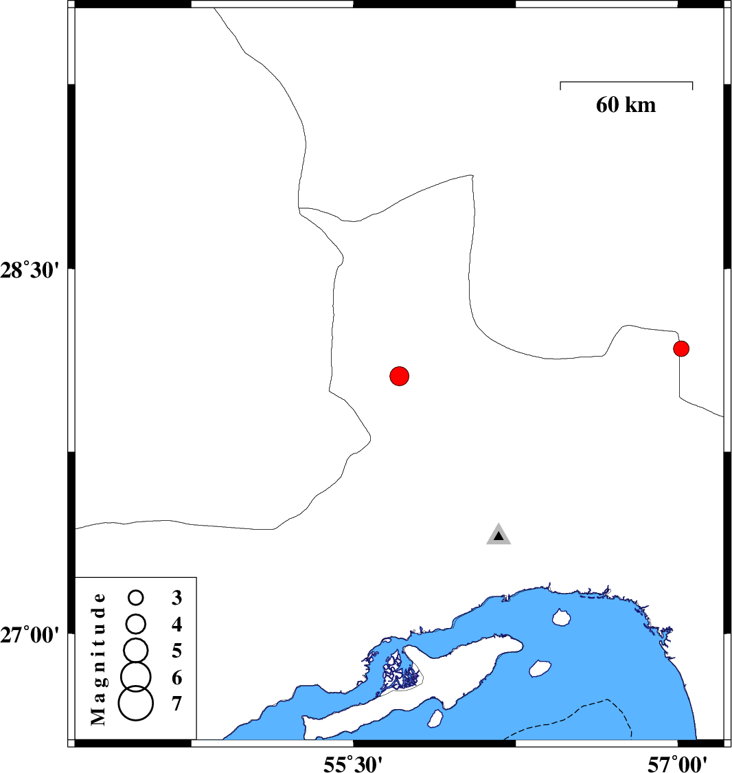 | 2017/11/23 | 02:47:23.8 | 06:17:23.8 | 28.06 | 55.712 | 16 | ML:3.9 | Hormozgan Province, 33 km South-West of Hajiabad | ||