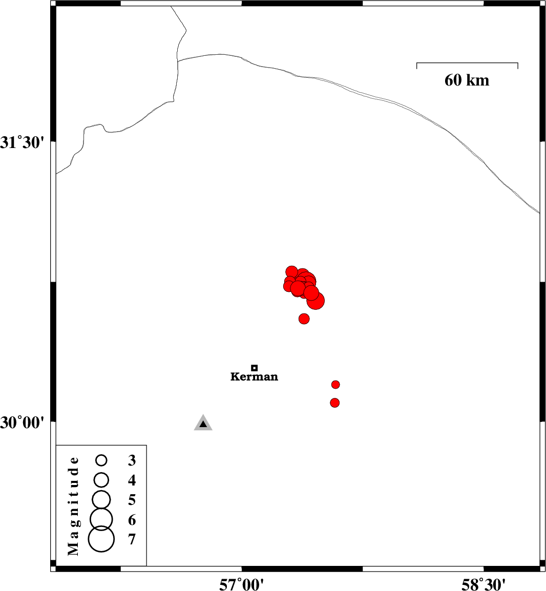 2017/12/01 05:12:43.2 08:42:43.2 30.55257.38714 ML:2.9 Kerman Province, 42 km North-East of Kerman