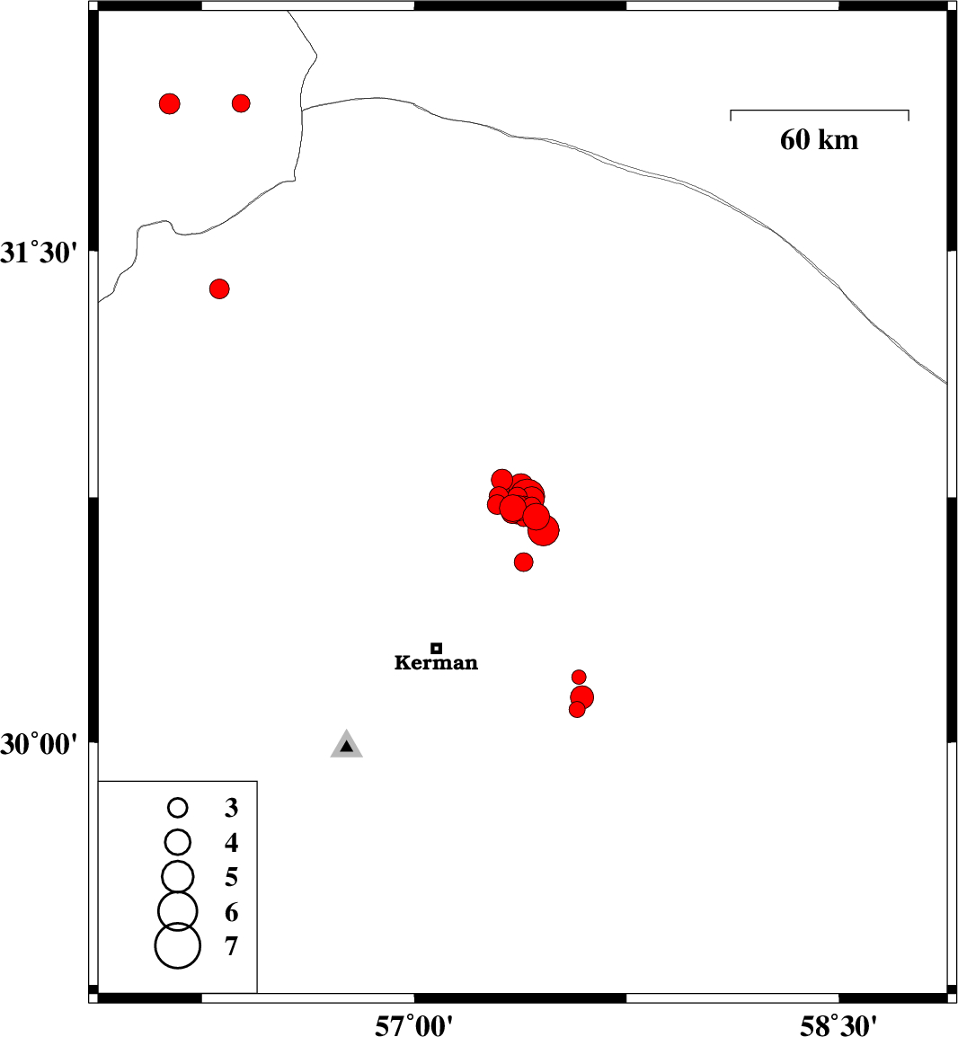 2017/12/01 03:35:00.5 07:05:00.5 30.75257.39916 ML:5.5 Kerman Province, 60 km North-East of Kerman