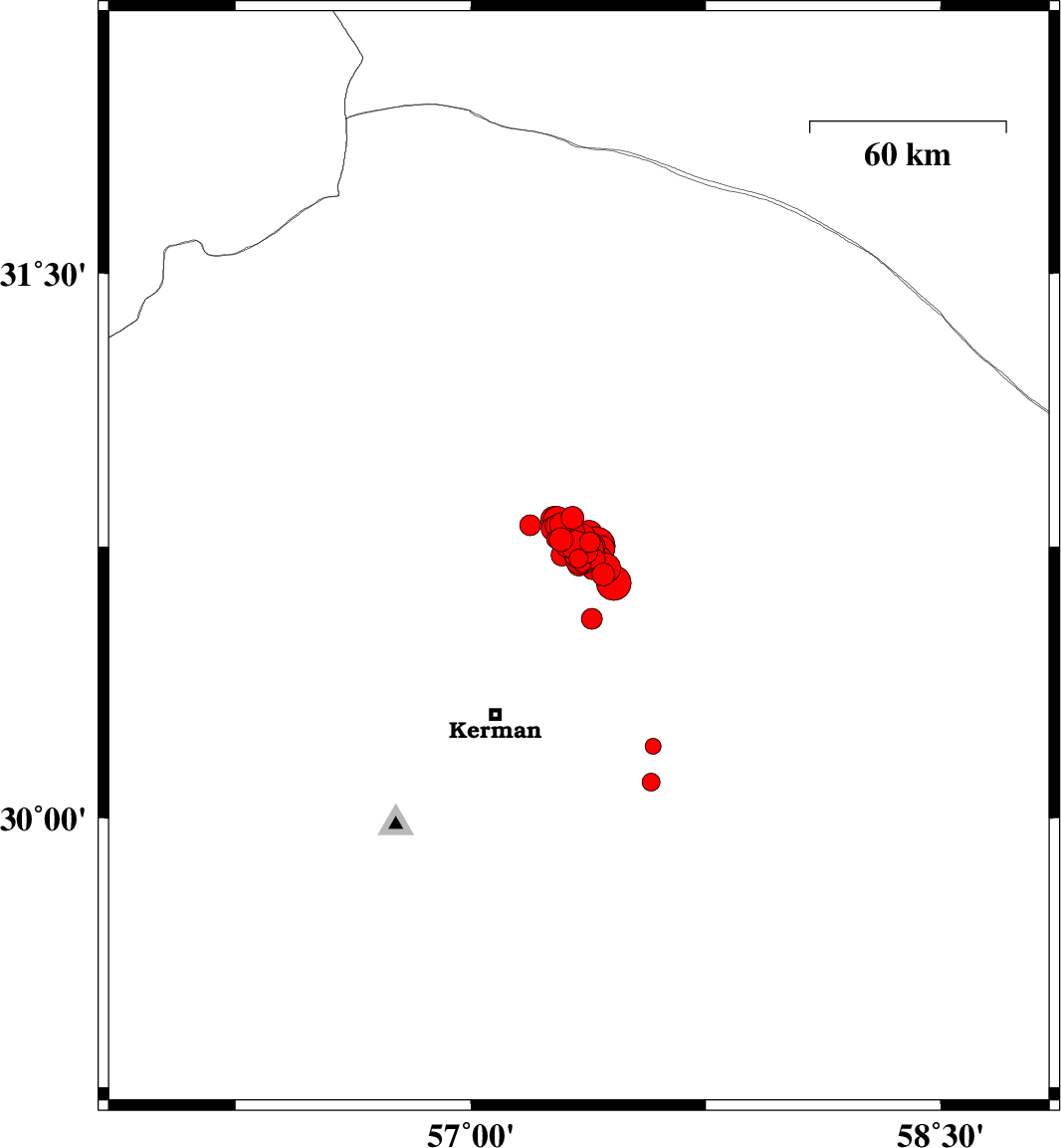 2017/12/01 03:35:00.5 07:05:00.5 30.75257.39916 ML:5.5 Kerman Province, 60 km North-East of Kerman