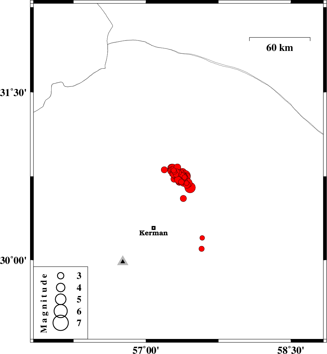 2017/12/01 03:35:00.5 07:05:00.5 30.75257.39916 ML:5.5 Kerman Province, 60 km North-East of Kerman