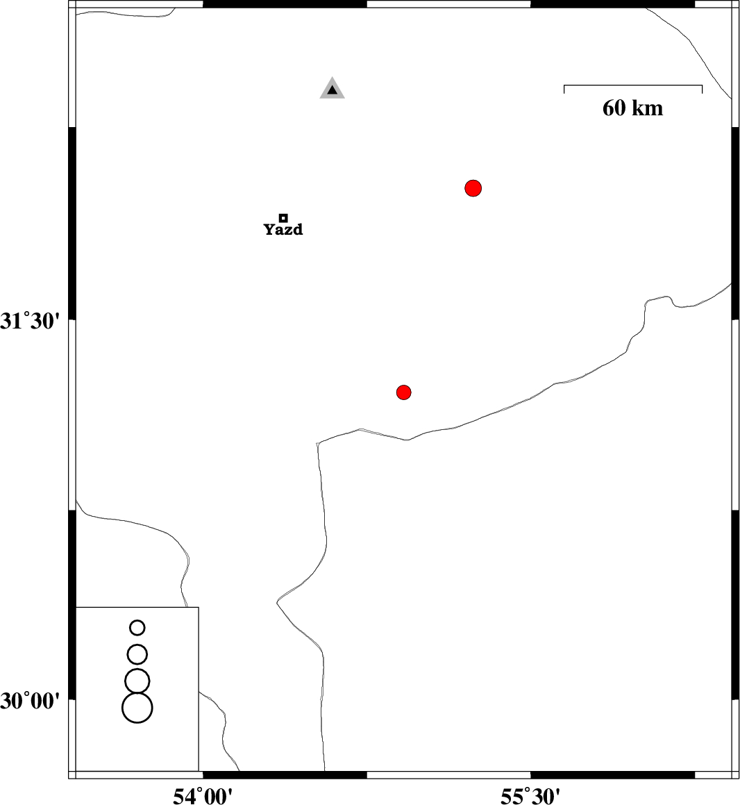 | 2017/11/29 | 18:17:28.4 | 21:47:28.4 | 31.213 | 54.918 | 14 | ML:2.9 | Yazd Province, 61 km South-East of Mehriz | ||