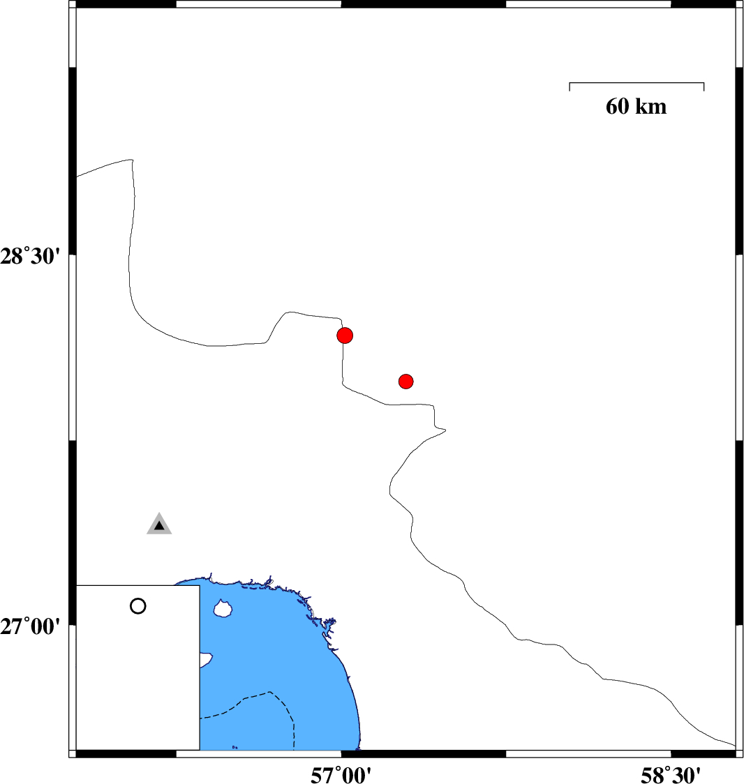 | 2017/11/27 | 08:43:55.3 | 12:13:55.3 | 27.988 | 57.294 | 17 | ML:3 | Kerman Province, 40 km -West of Kahnuj | ||