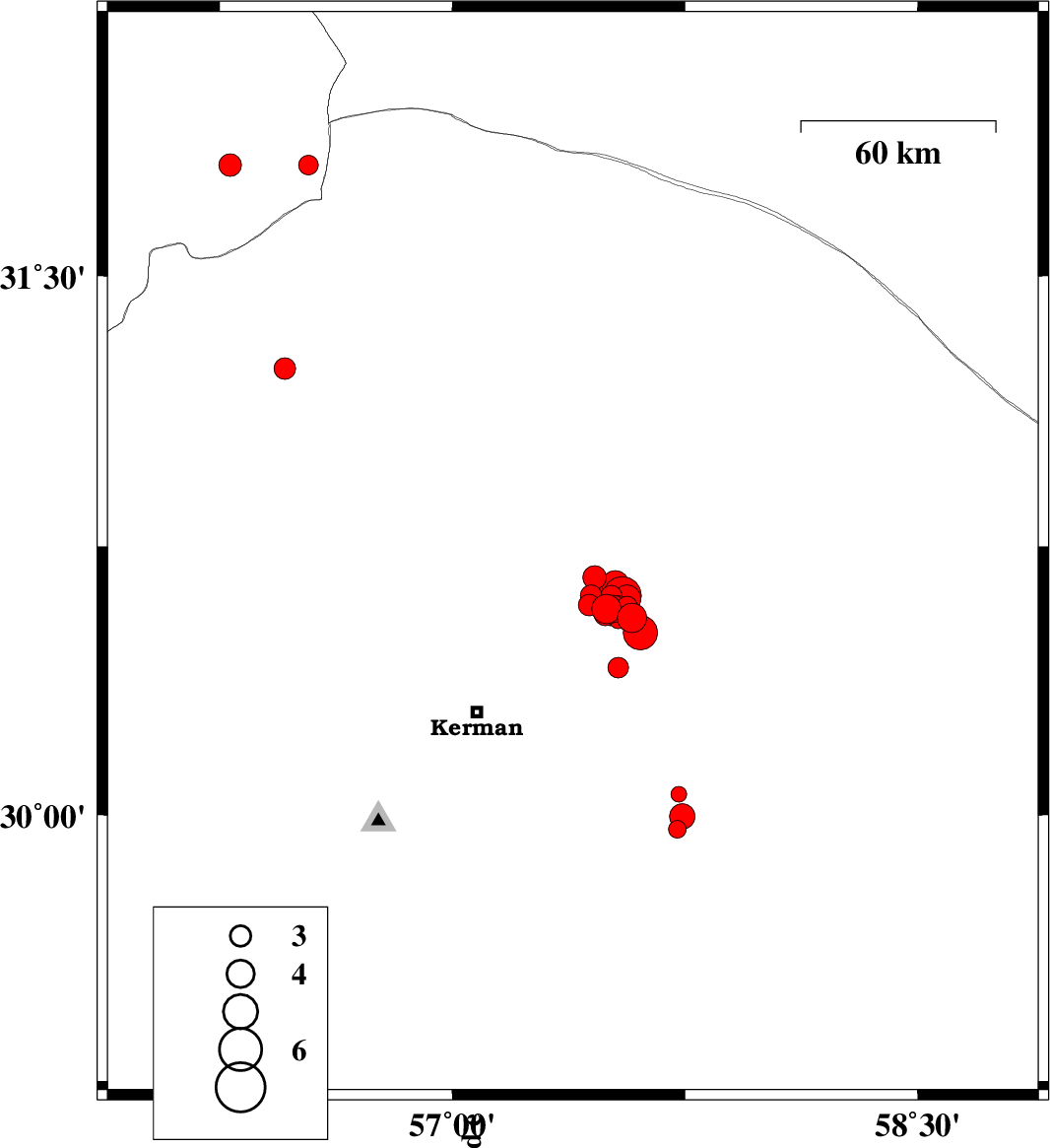 2017/12/01 05:12:43.2 08:42:43.2 30.55257.38714 ML:2.9 Kerman Province, 42 km North-East of Kerman
