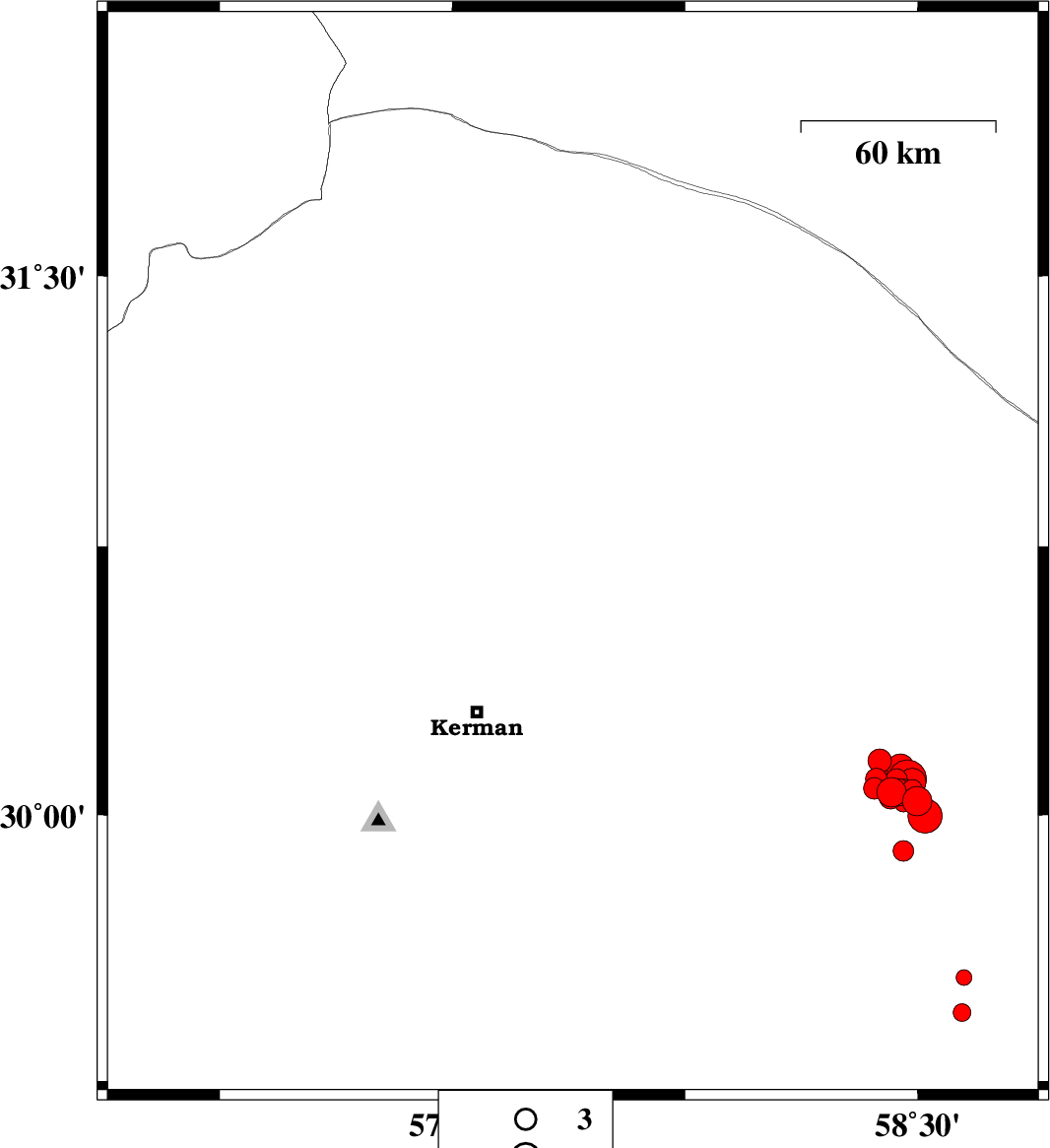 2017/12/01 03:35:00.5 07:05:00.5 30.75257.39916 ML:5.5 Kerman Province, 60 km North-East of Kerman