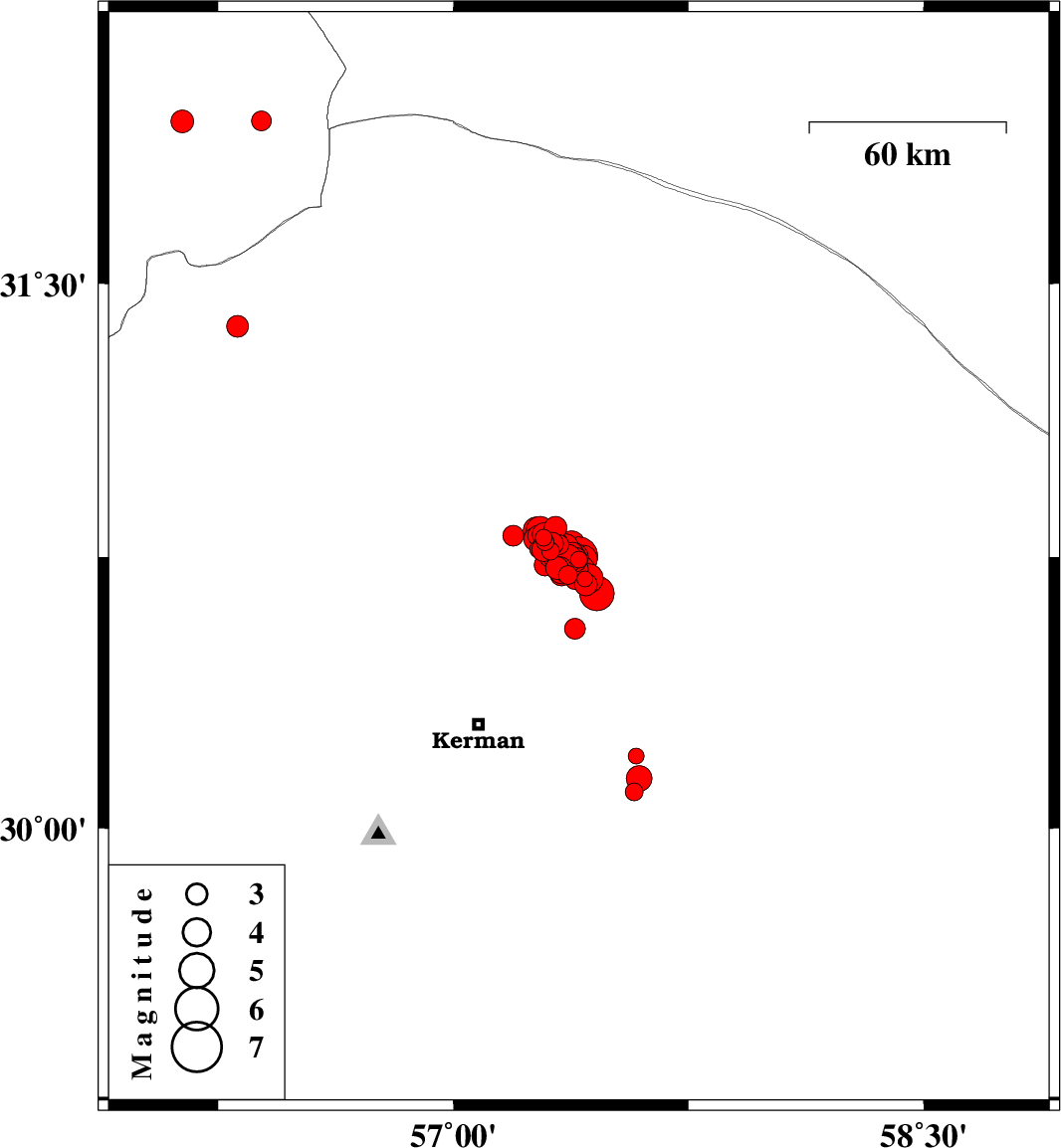 2017/12/01 03:35:00.5 07:05:00.5 30.75257.39916 ML:5.5 Kerman Province, 60 km North-East of Kerman
