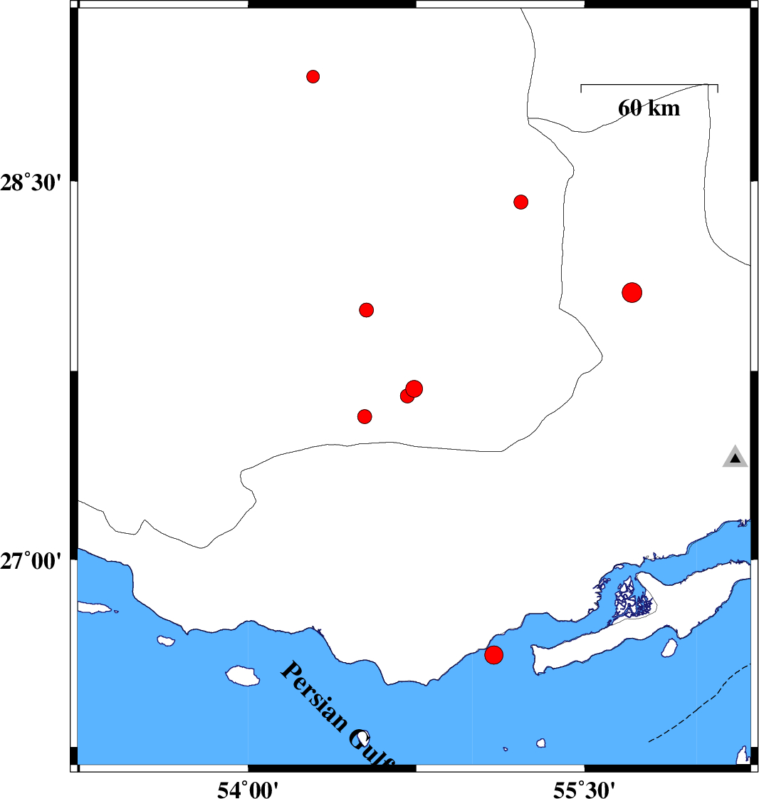 2017/11/12 02:47:28.3 06:17:28.3 26.61955.09514 ML:3.7 Persian Gulf, 27 km -East of Bandar-e lengeh