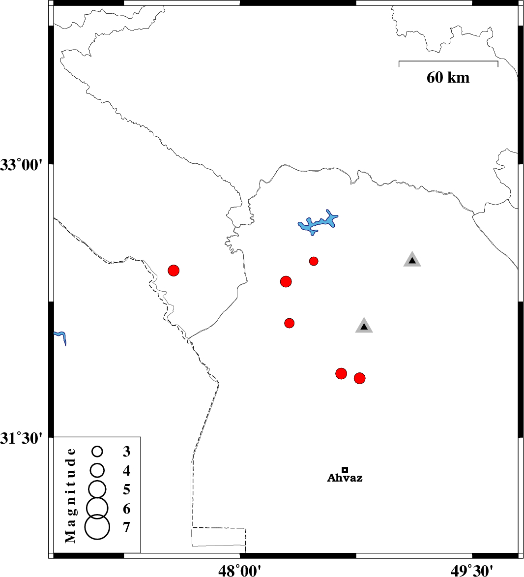 | 2017/12/10 | 00:54:34.8 | 04:24:34.8 | 32.359 | 48.296 | 14 | ML:3.2 | Khoozestan Province, 10 km -West of Dezful | ||