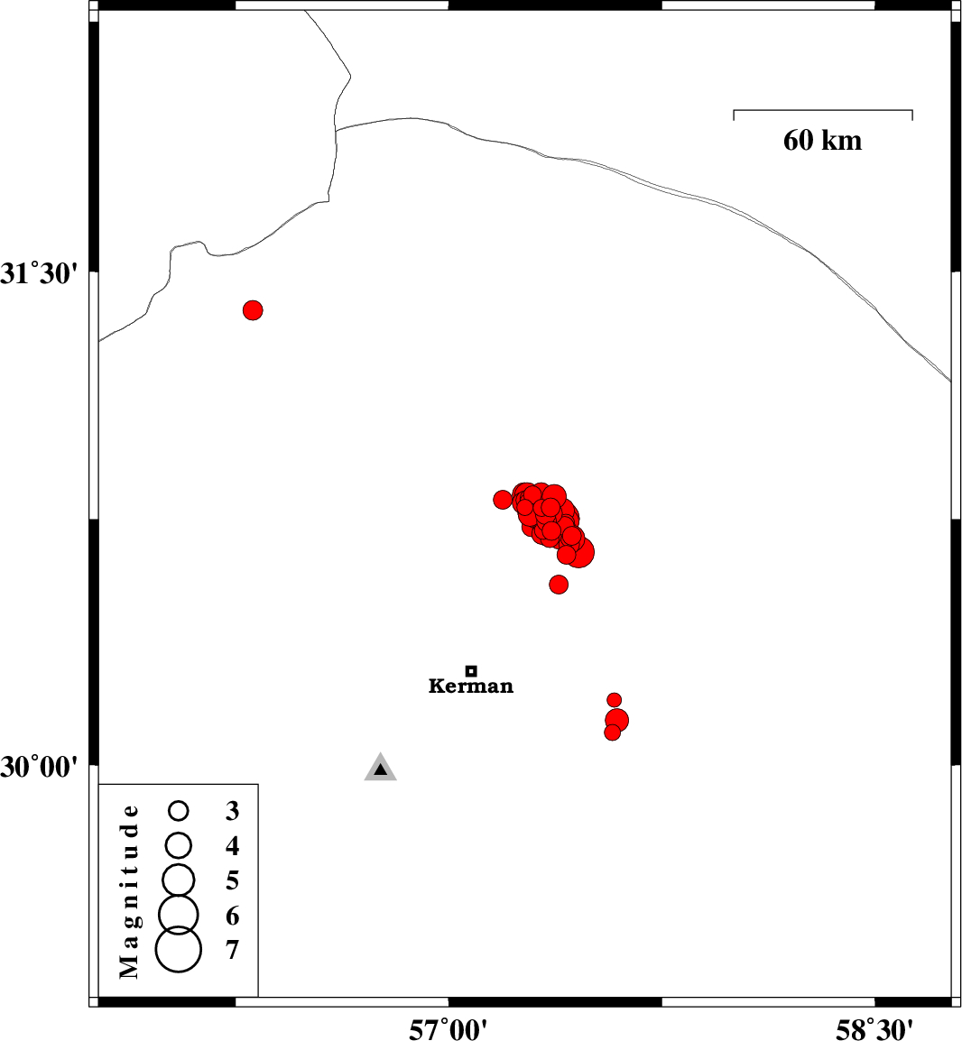 2017/12/05 09:23:43.2 12:53:43.2 30.7657.35414 ML:4.1 Kerman Province, 59 km North-East of Kerman