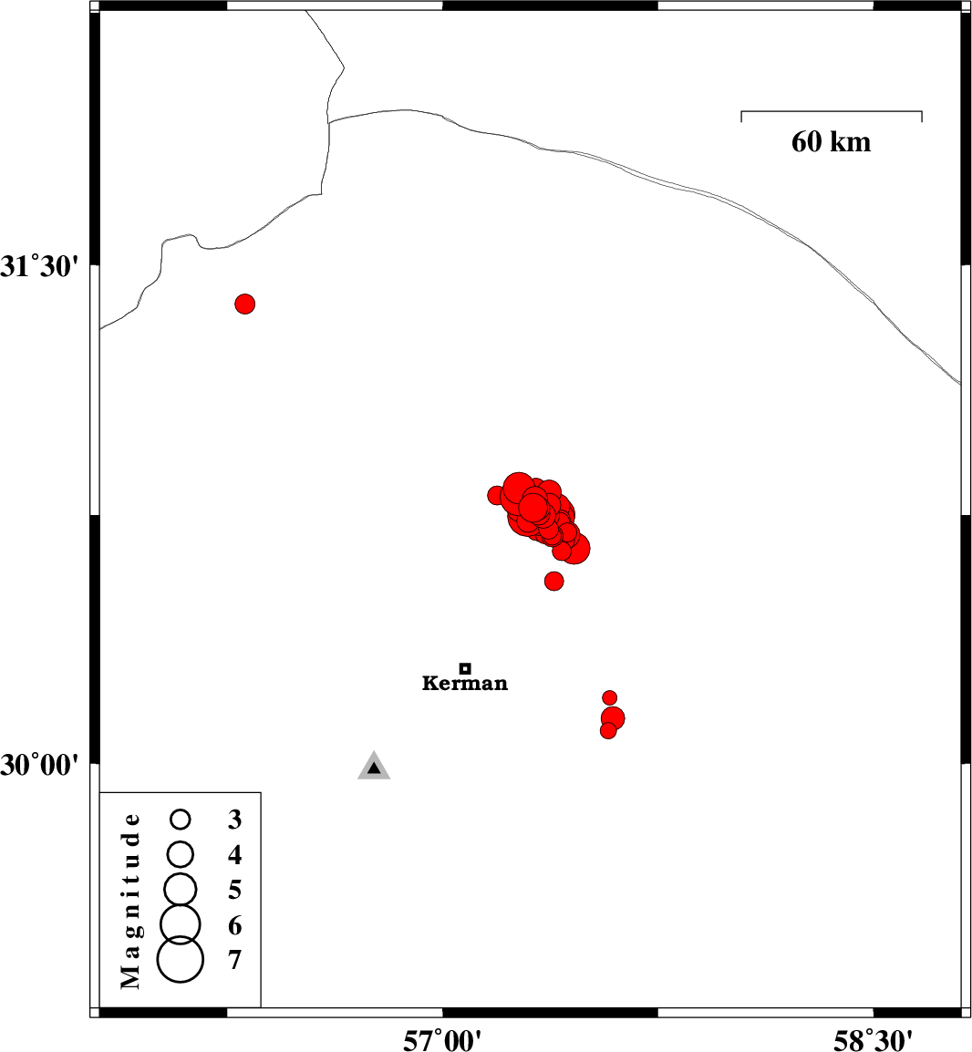 2017/12/01 03:35:00.5 07:05:00.5 30.75257.39916 ML:5.5 Kerman Province, 60 km North-East of Kerman