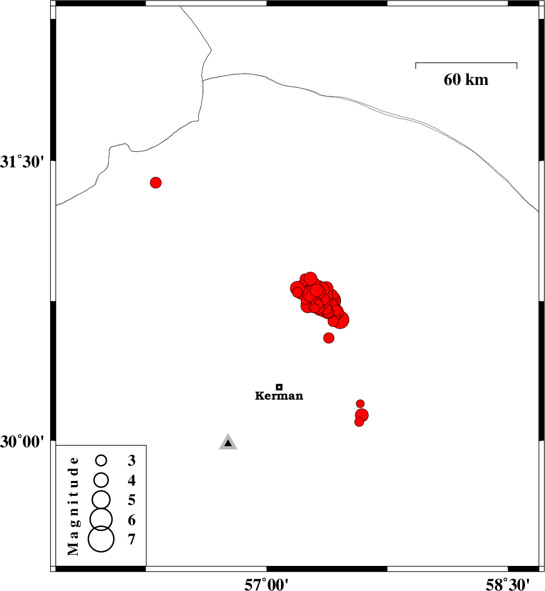 2017/12/01 05:12:43.2 08:42:43.2 30.55257.38714 ML:2.9 Kerman Province, 42 km North-East of Kerman