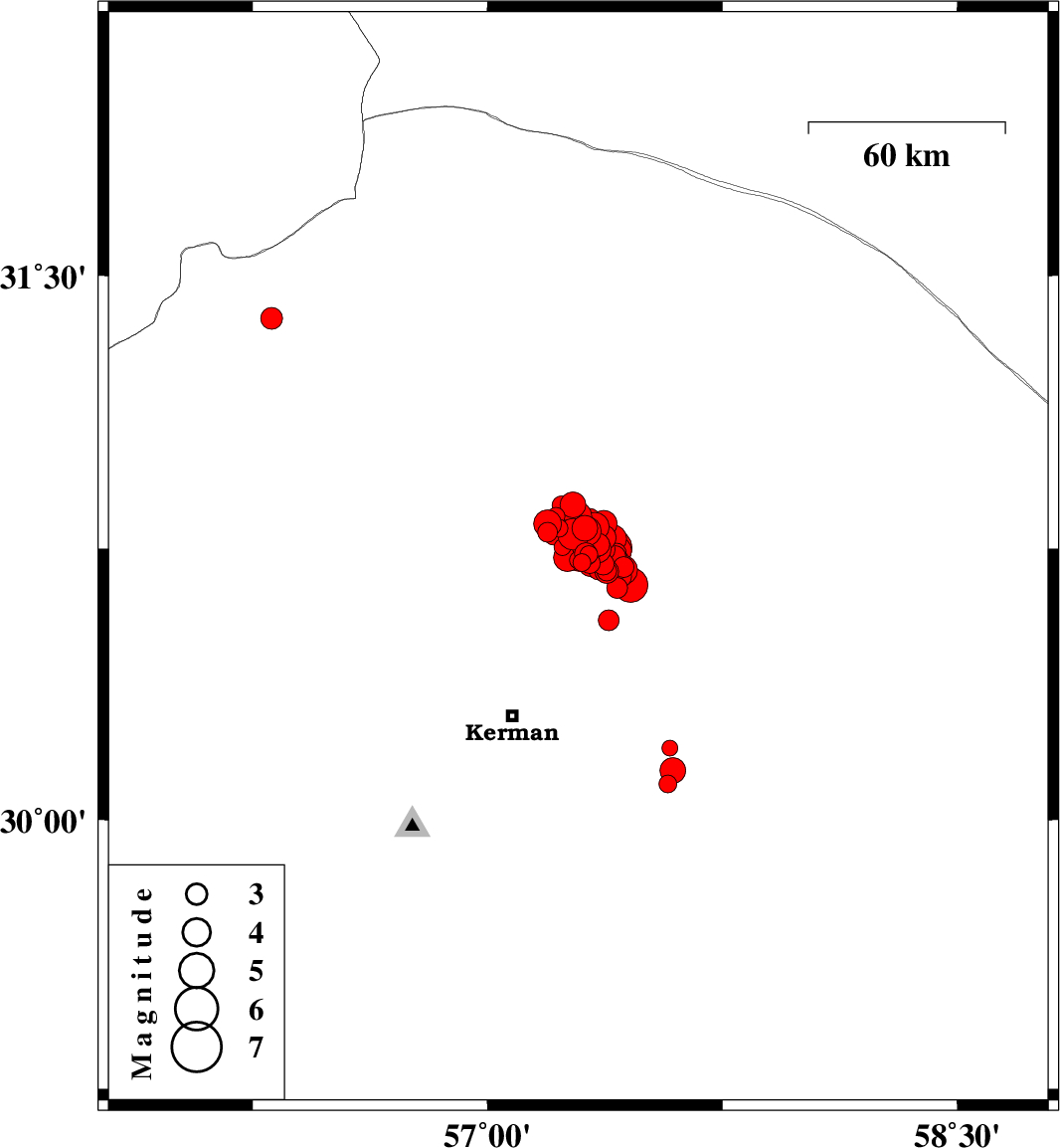 2017/12/01 03:35:00.5 07:05:00.5 30.75257.39916 ML:5.5 Kerman Province, 60 km North-East of Kerman