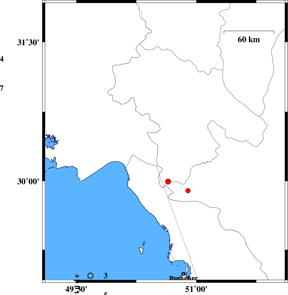 | 2017/12/11 | 23:49:16.5 | 03:19:16.5 | 30.519 | 50.358 | 15 | ML:3.1 | Khoozestan Province, 14 km -East of Behbahan |